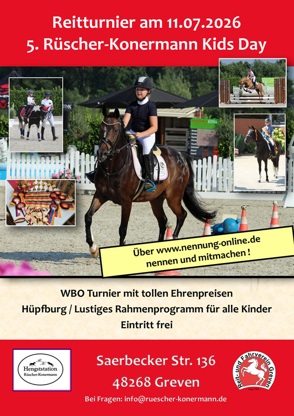 Am Samstag, den 11.07.2026 findet bei uns in Greven der 5. Rüscher-Konermann Kids Day statt!